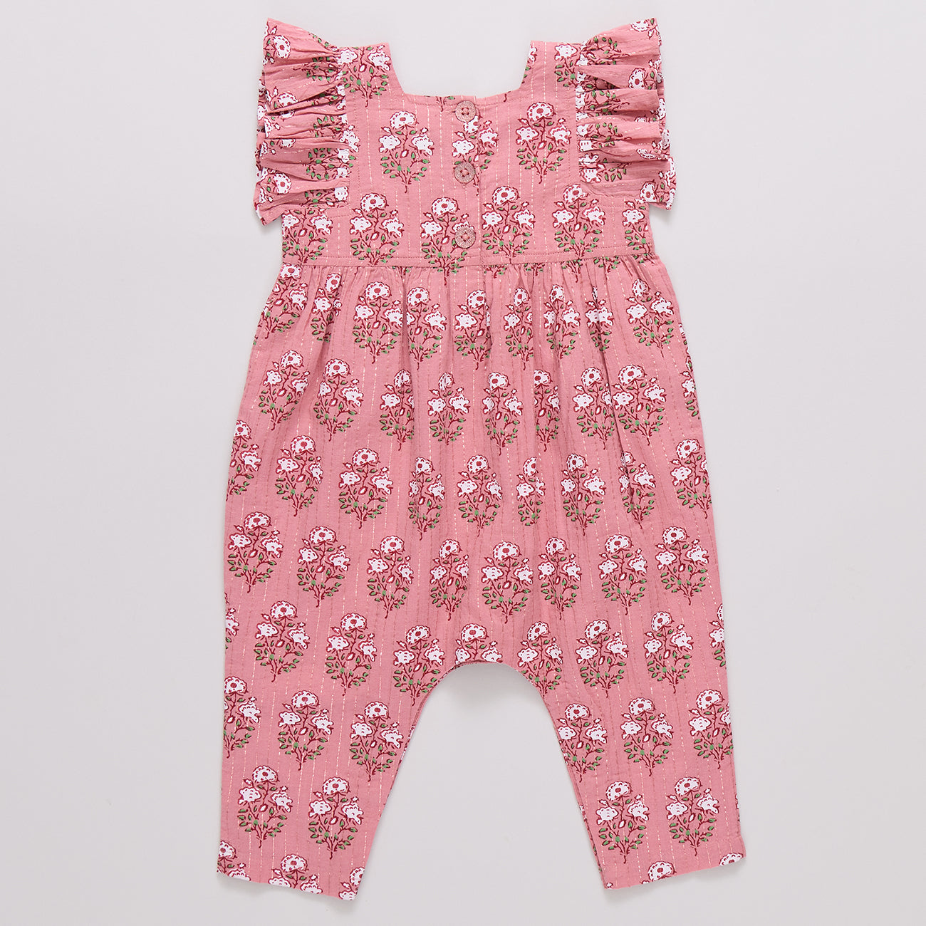 Blushing with charm, our Baby Girls Elsie Jumper in Pink Strawflower Block Print is a springtime delight. Ruffled sleeves and gentle gathers make it perfect for first adventures. Match with big sister in the Girls Mary Barrett Dress or Girls Ava Top and mom in the Women’s Pintuck Indira Top or Women’s Theodore Short for a perfect family match!