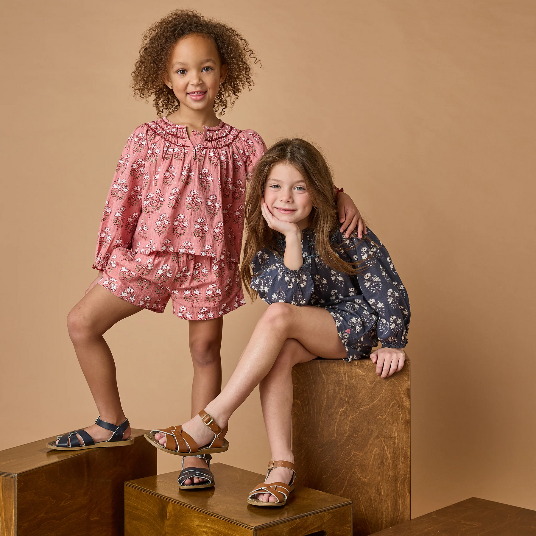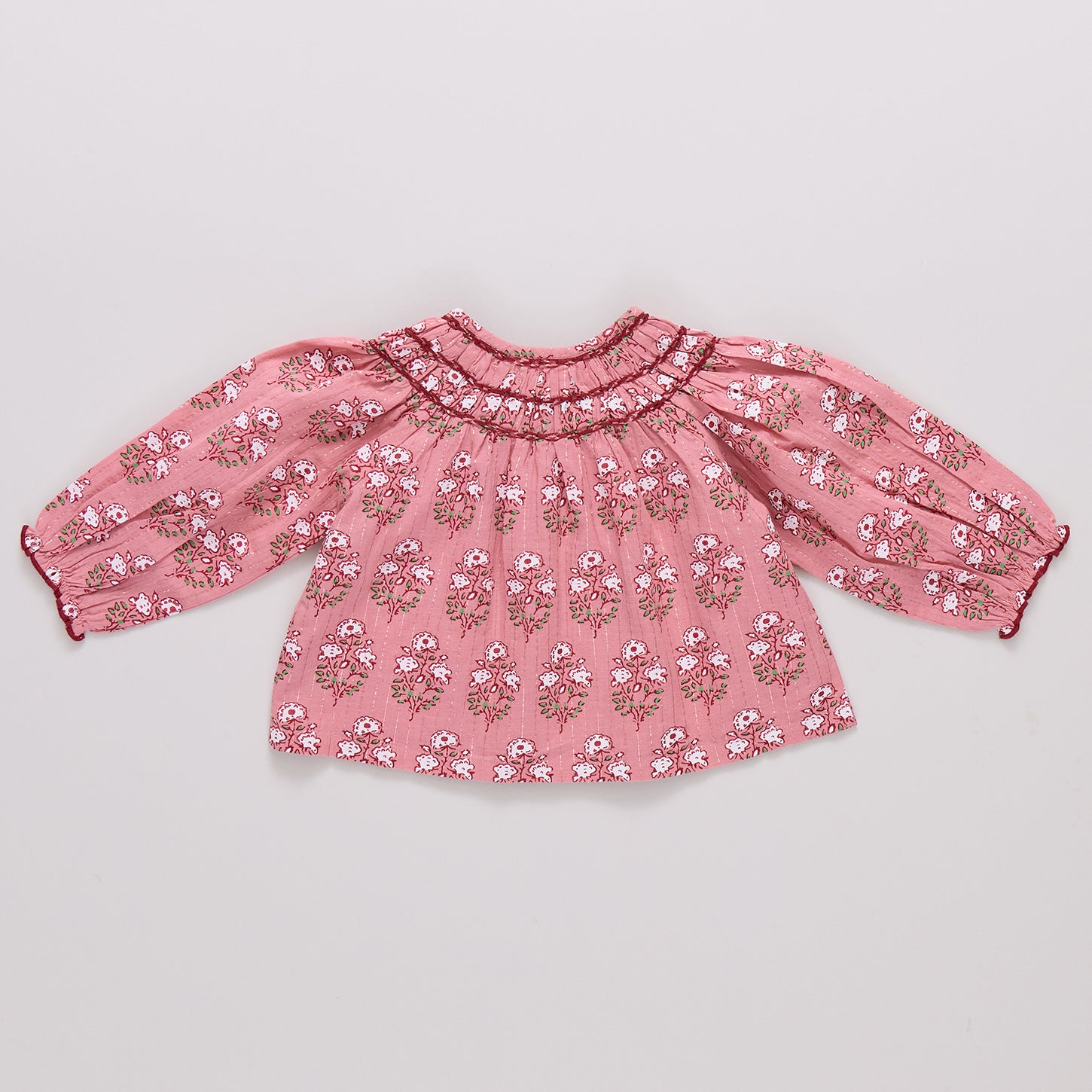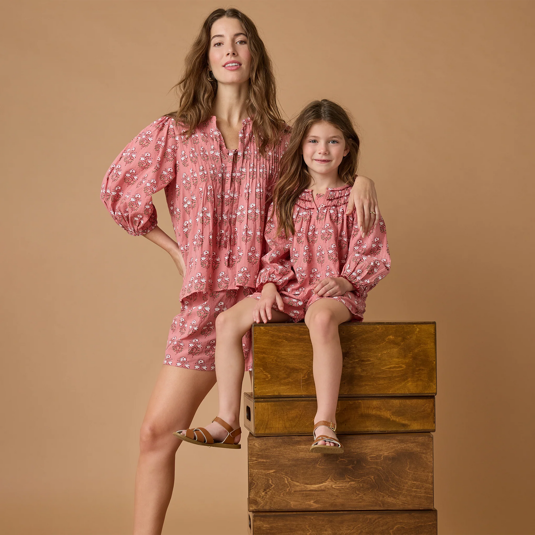 Soft as a petal and sweet as spring, our Girls Ava Top in Pink Strawflower Block Print is filled with romantic charm. Intricate smocking and gentle gathers make it a keepsake piece for play or special days. Pairs beautifully with the Girls Theodore Short and mom’s Women’s Pintuck Indira Top in Pink Strawflower Block Print.