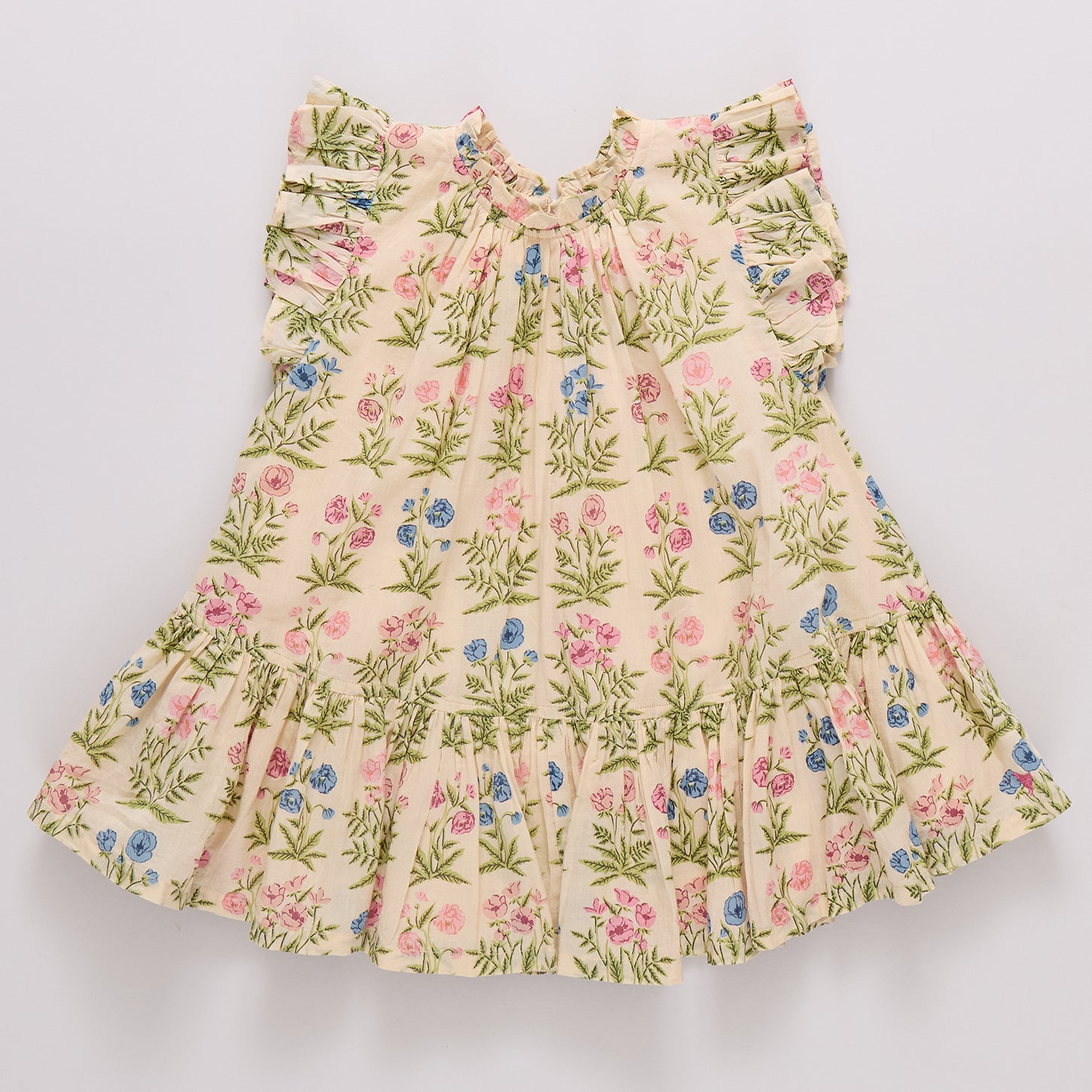Our Girls Harper Dress in Leafy Floral captures the feeling of a sunlit garden in bloom. Soft gathers and fluttery ruffles create a silhouette that feels as light and lovely as spring itself. Matches perfectly with the Baby Girls Wynne Bubble and the Women’s Marilyn Bell Sleeve Dress.