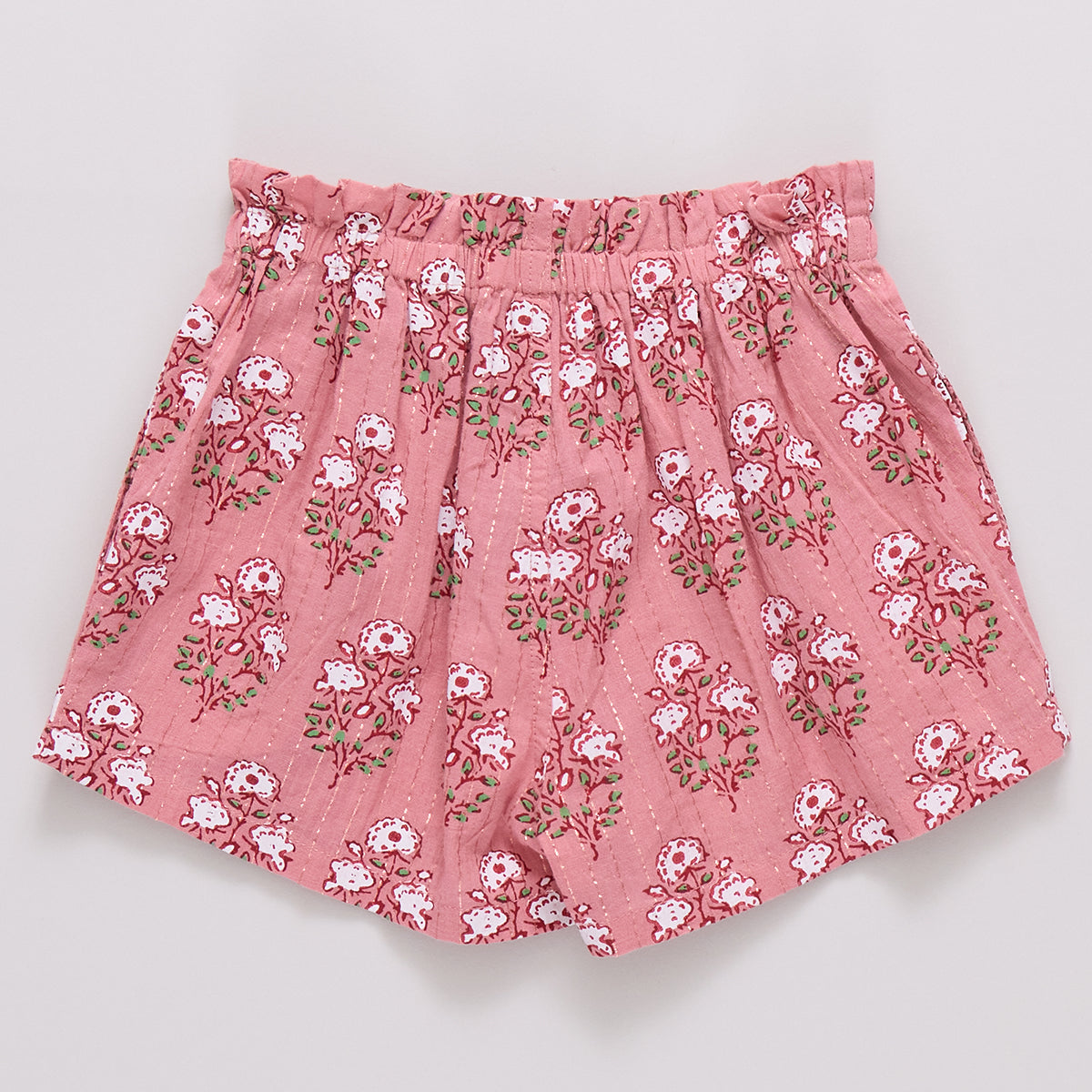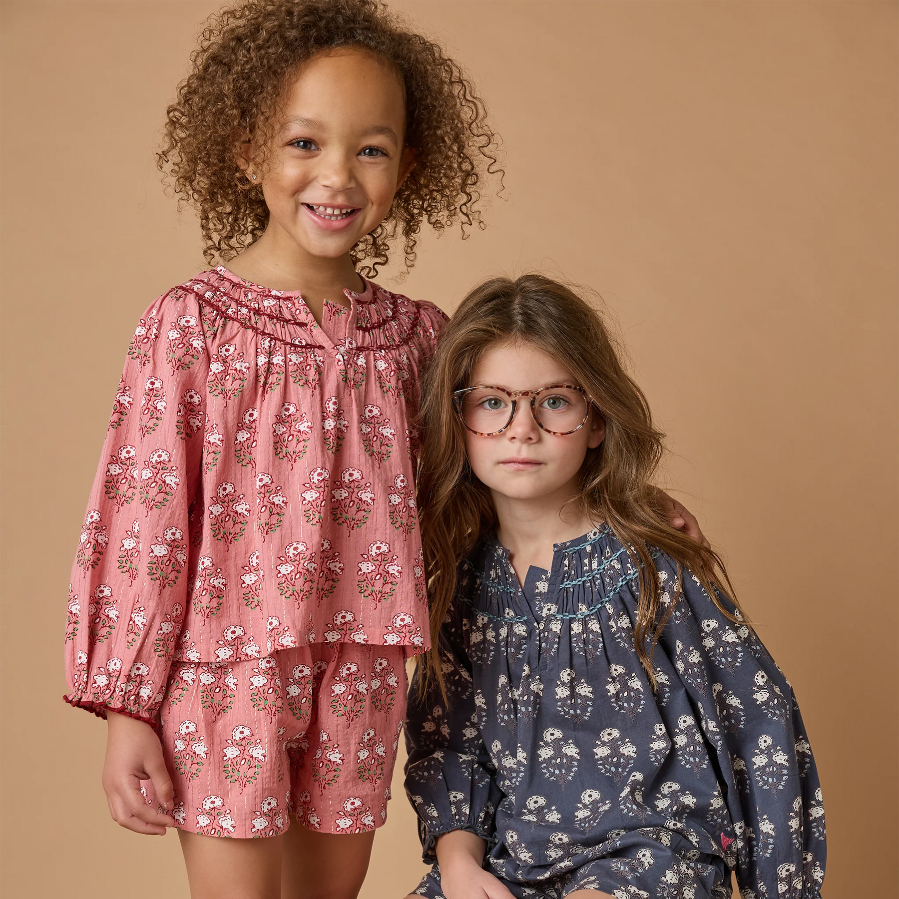 Sweet and playful, our Girls Theodore Short in Pink Strawflower Block Print is made for sunshine and laughter. Pair it with the matching Girls Ava Top or coordinate with the Women’s Pintuck Indira Top and Women’s Theodore Short for a family floral moment!