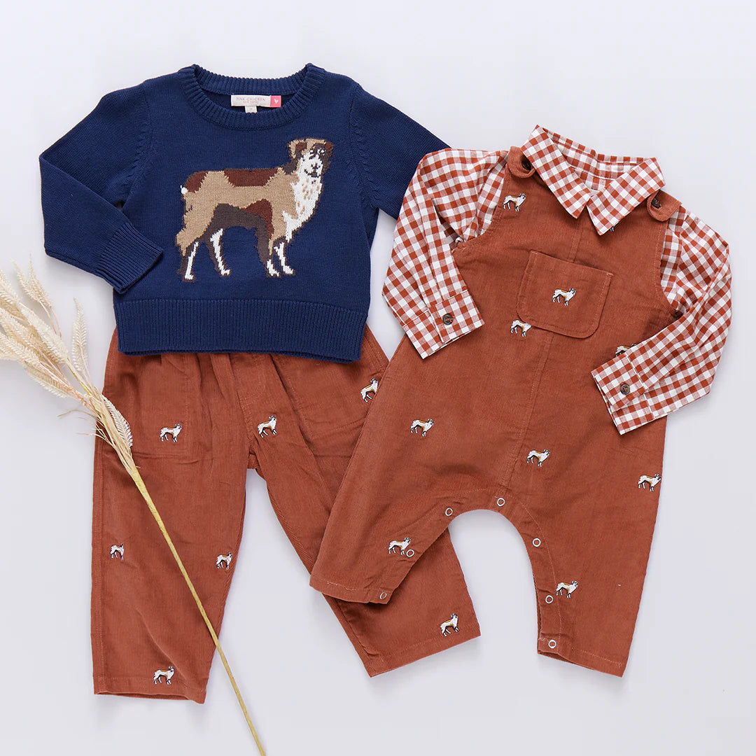 Going For Gingham! Rust and cream checks make up our classic Baby Boys Long Sleeve Jack Shirt in our rich Pony Gingham. This flock favorite style, perfectly suited for a square dance or a hayride, features two pattern on pattern front chest pockets and a faux coconut front button closure. Pair with our Baby Boys Jackson Pant for a handsome look!