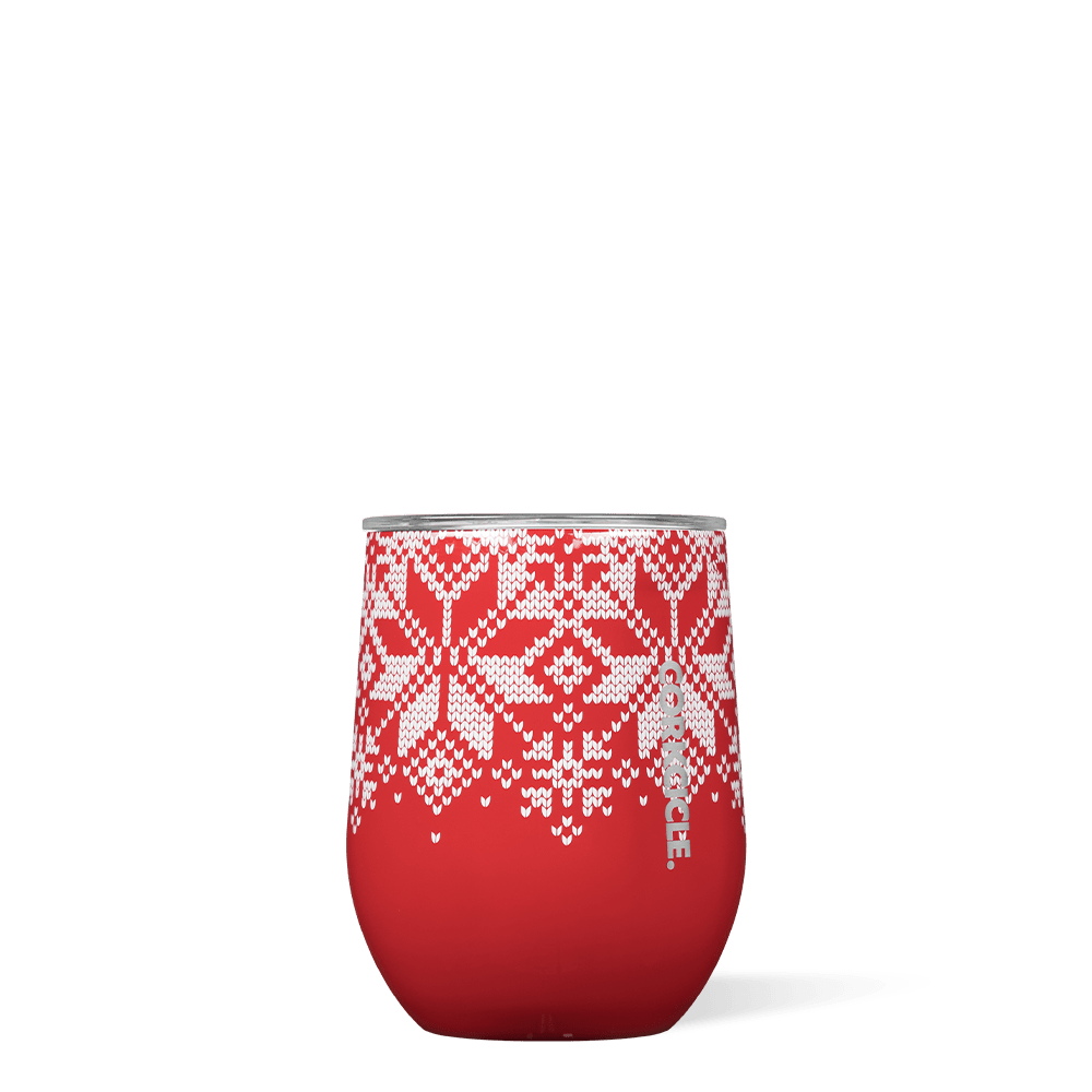 Fairisle Red Holiday 12oz Stemless Wine Glass