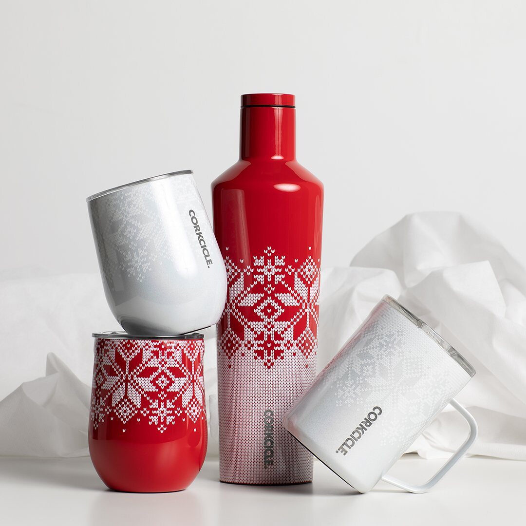 Grab a cup of cheer — new, cozy-cool holiday patterns are here! Festive, sweater-inspired Fairisle is back in beloved Red and Unicorn Magic and new Blue, Gold, and iridescent Prism. Enjoy hot drinks like cider and mulled wine for up to 3 hours warm, or chilled options like Champagne and cocktails for 9 hours cold.