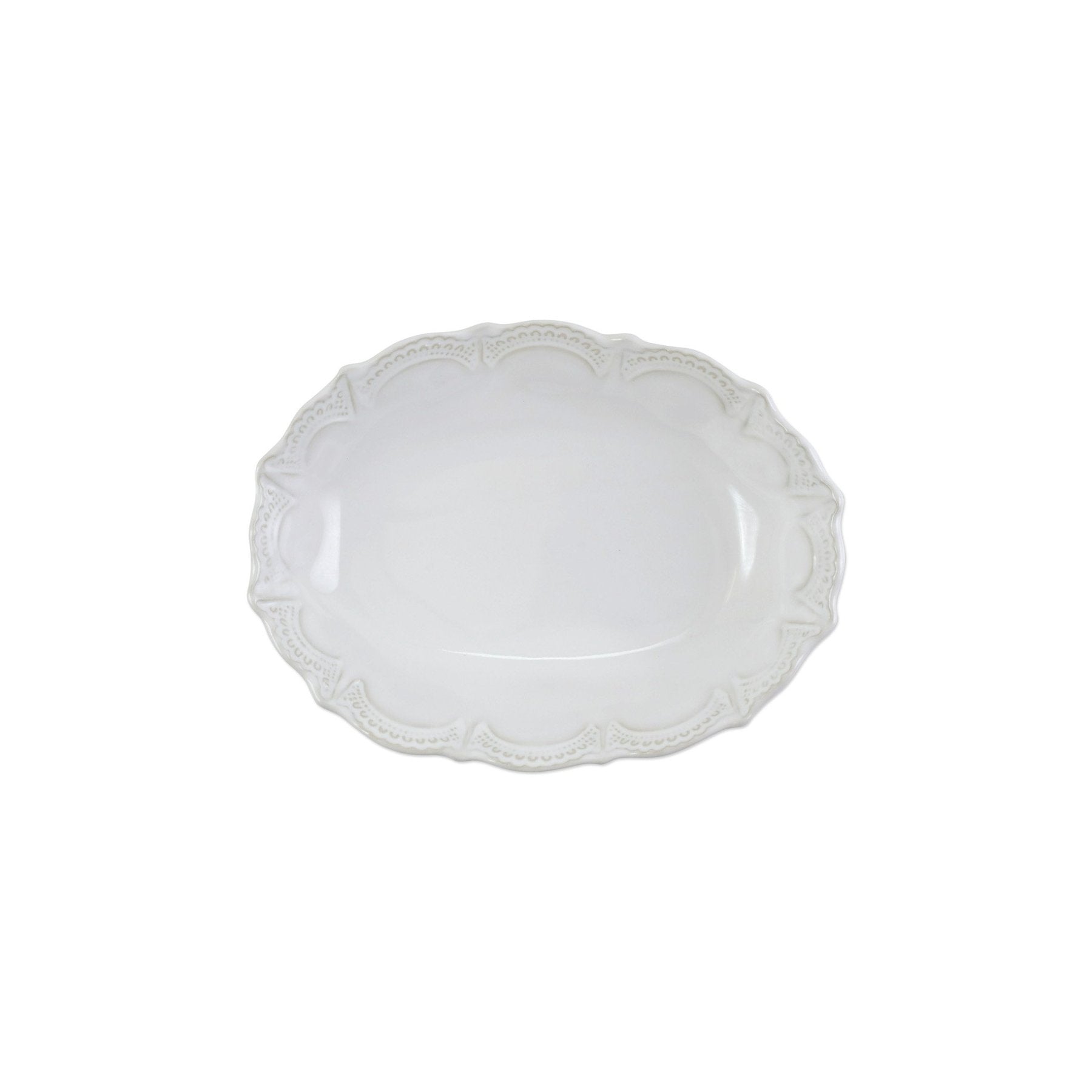 Italian for enchantment, Incanto is inspired by Italy's art, landscape, and Venetian history. The intricate design on the Incanto Stone White Lace Small Oval Bowl pays homage to the famed lace of Venice’s Burano island, and bowl is a piece of art for your table.