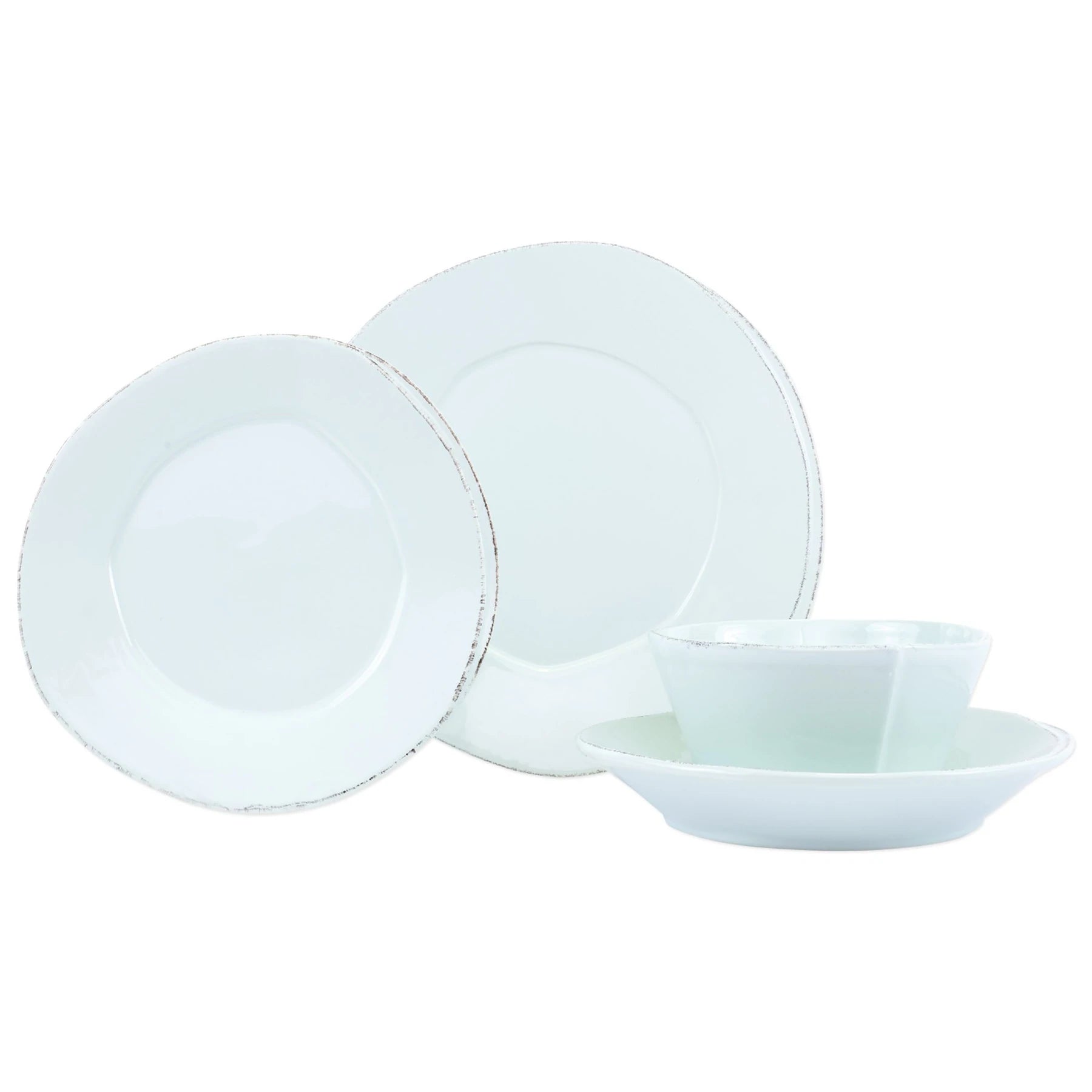 Beloved for its sophisticated simplicity, versatility, and durability, Lastra is our bestselling collection. The Lastra Four-Piece Place Setting is wonderful starter kit for a Lastra collection, and it includes a European dinner plate, a salad plate, a pasta bowl, and a cereal bowl. Lastra’s design was inspired by the circular wooden slabs used for centuries to create the outer mold in cheesemaking throughout Italy. When fashioned together with twine, the hoop was left with a slight overlap to help maintain the shape of the cheese mold. Maestro molder Stefano Roselli incorporates the overlapping detail into the entire design, from its foot to its rim. A dark dusting on the edges of each piece suggests the ash that was used to preserve these cheeses and highlights each unique silhouette.