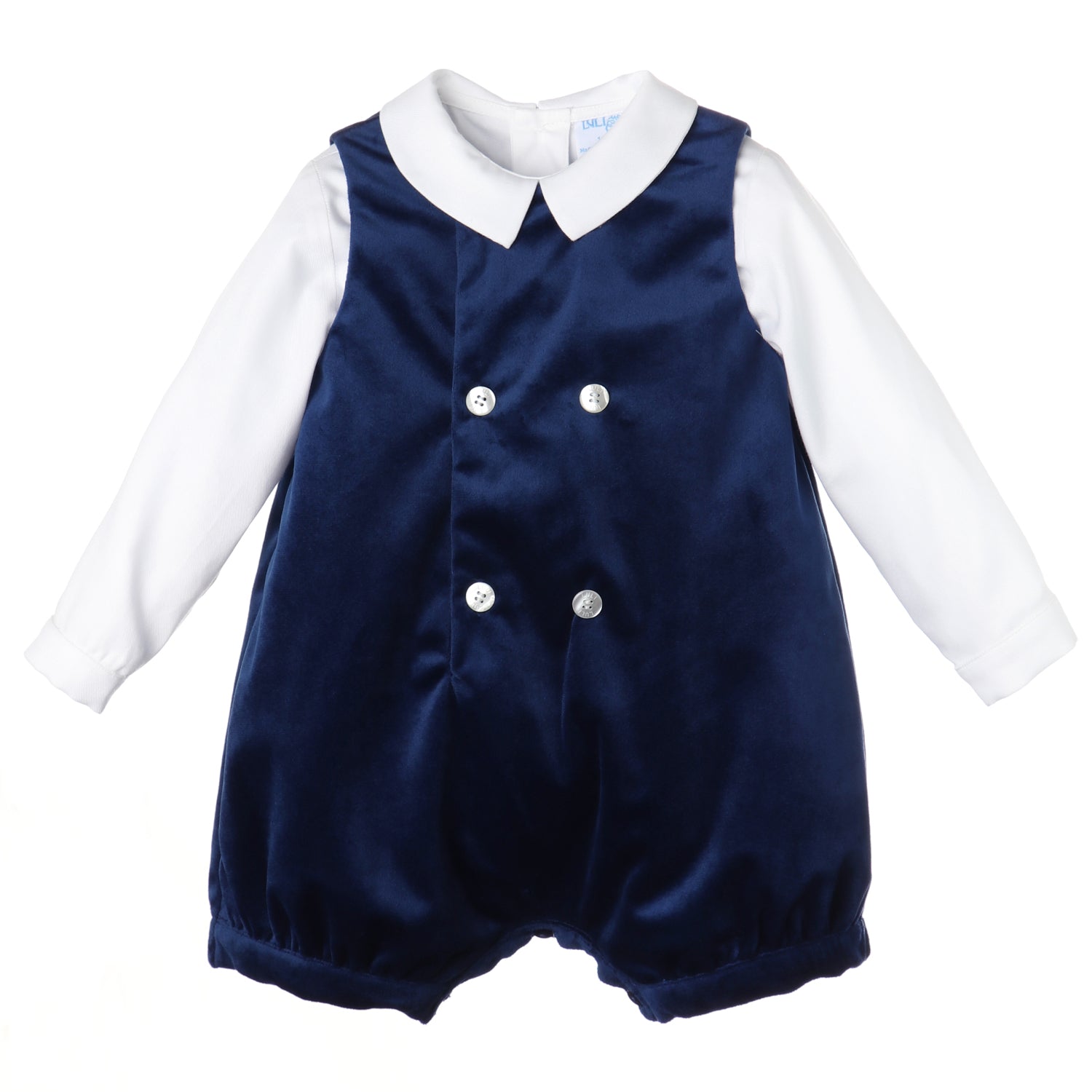 Adorable navy velvet button front john john with long sleeve top. Would be perfect for special occasions!