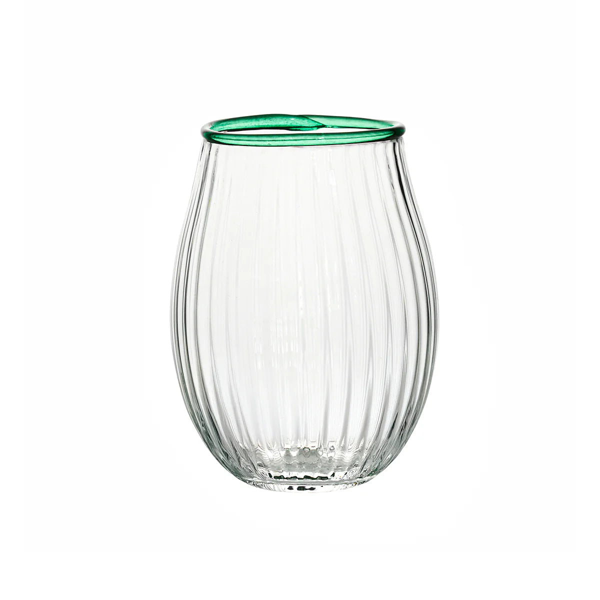 Our iconic Bohemian Glass is given a fresh and modern spin with a joyful wink of color. Chic and shimmering, each stemless wine glass ripples with intricate mouth blown glass and is rimmed with a happy hue to create pure cocktail-hour eye candy for everything from lemonade to wine to fun party drinks. This set includes one of each color. Gift boxed.