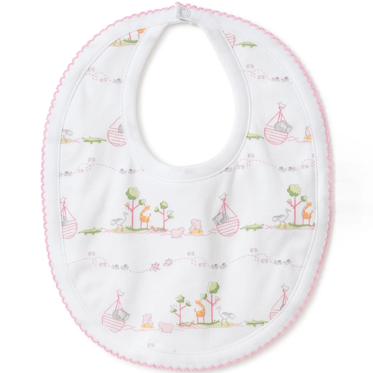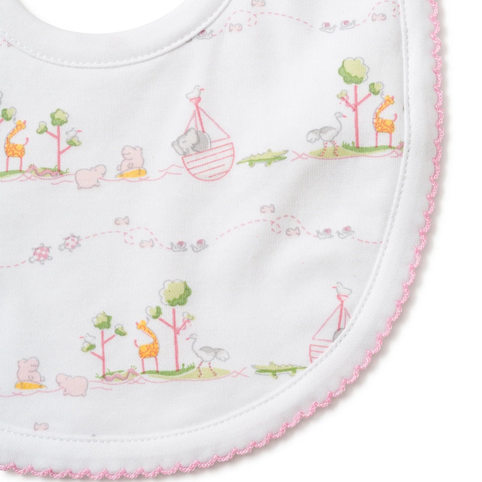 Noah's adorable animal friends pattern this pretty pink bib for your baby girl. Made from the softest Pima cotton for ultimate comfort.