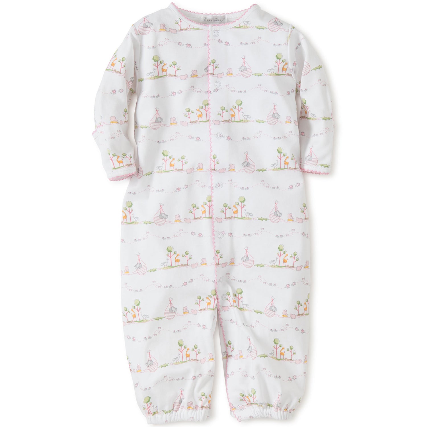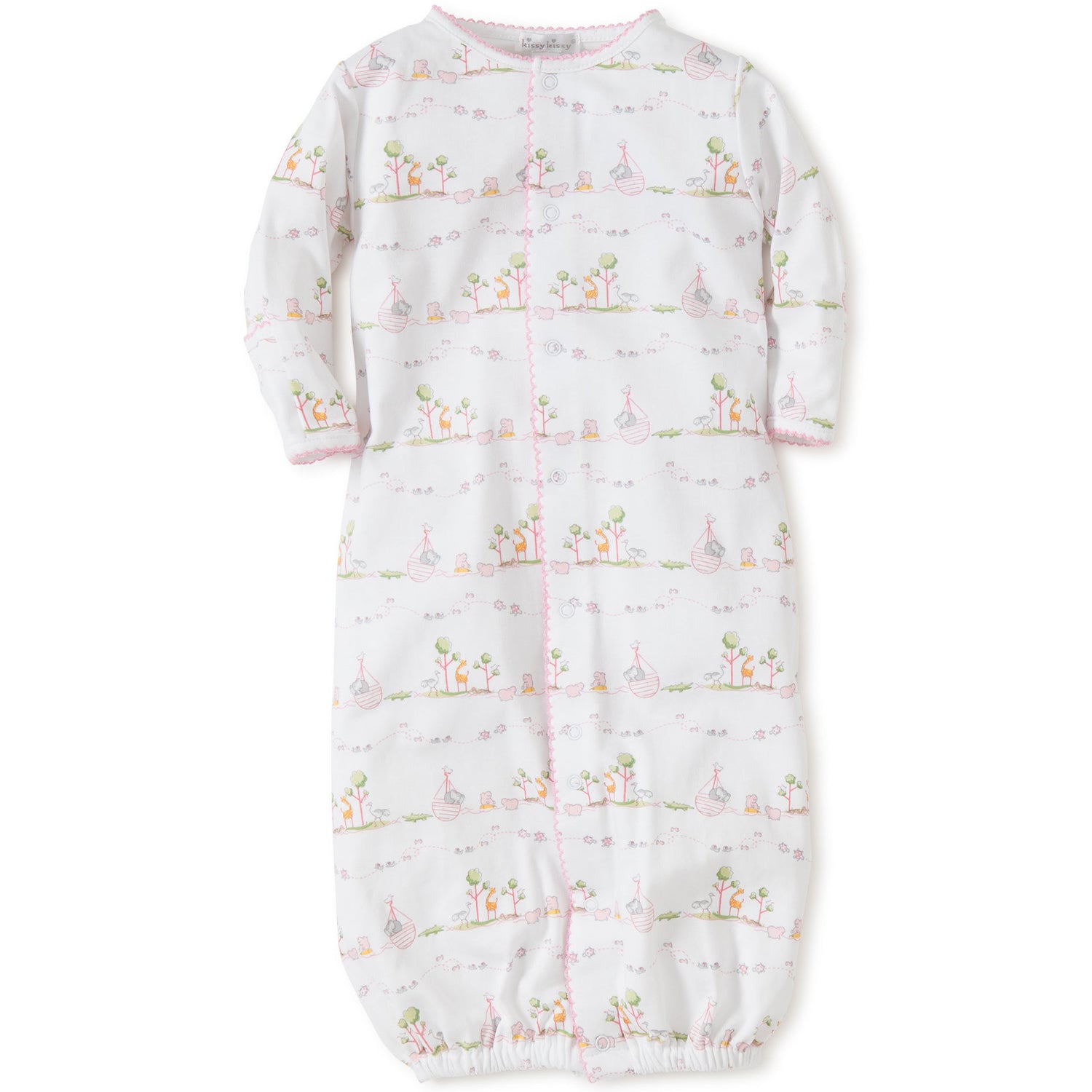 Noah's adorable animal friends pattern this cozy gown for your baby girl. Snaps on legs allow for easy conversion to playsuit. Made from the softest Pima cotton for ultimate comfort.