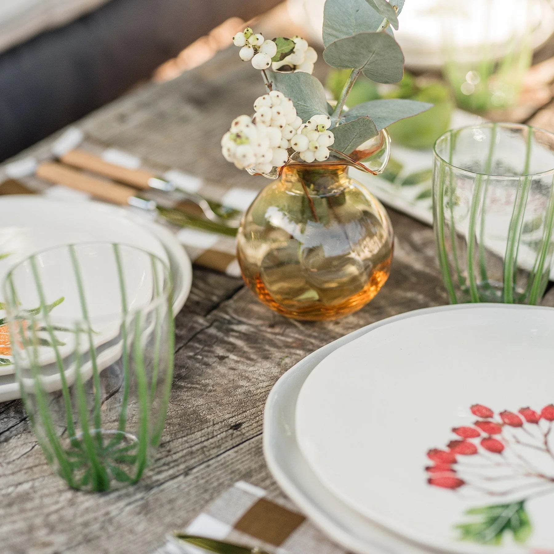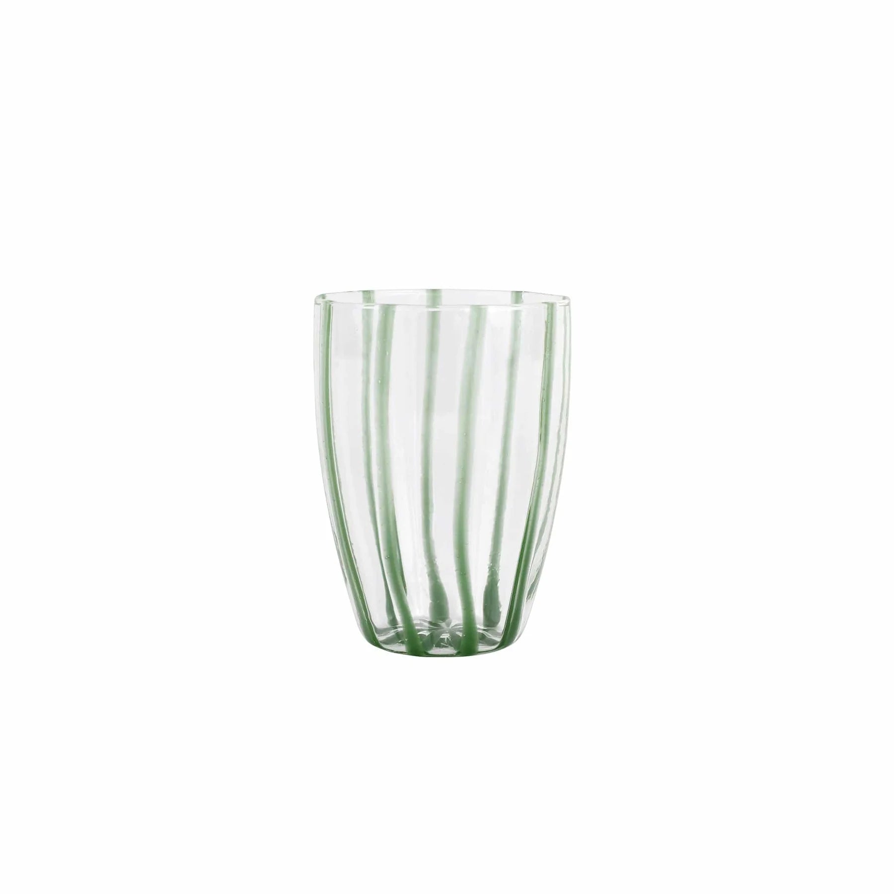 Mouthblown by skilled artisans, the Nuovo Stripe Green Tall Tumbler features painterly stripes gliding down each glass, and the result is a fresh and fun addition to your table.