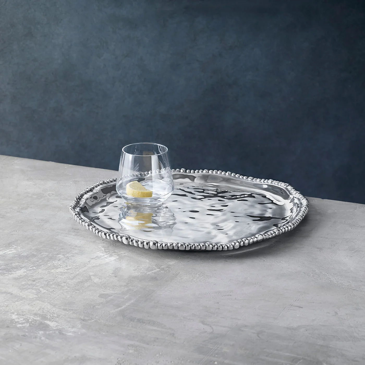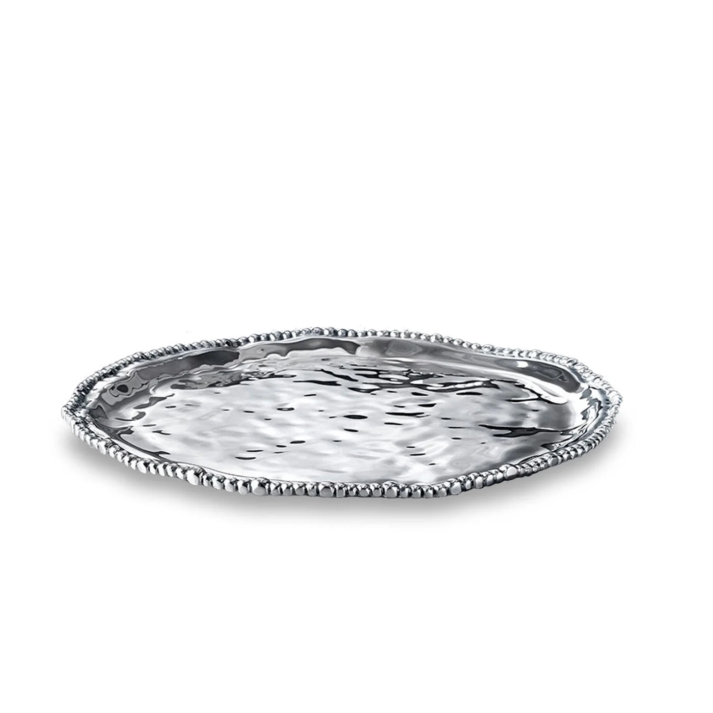 The Beatriz Ball Organic Pearl Nova round decorative serving platter is a beautiful addition to your serving ware, handcrafted & tarnish free. It is our exciting take on the traditional round platter, and makes an ideal gift. Free-form, fluid lines, and undulating surface are punctuated with a border of shimmering metal pearls, highlighting the handmade craftsmanship of the Organic Pearl Nova Round Platter.