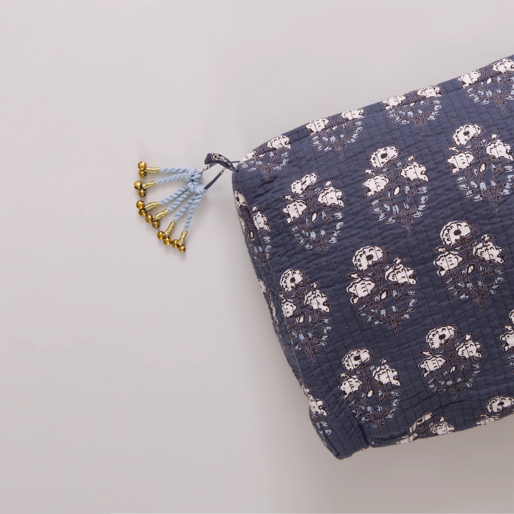 Keep your essentials tucked away in our Quilted Pouch in Navy Strawflower Block Print. Softly quilted cotton and a zip-top closure make it as practical as it is pretty, and a sweet companion to your Strawflower favorites.