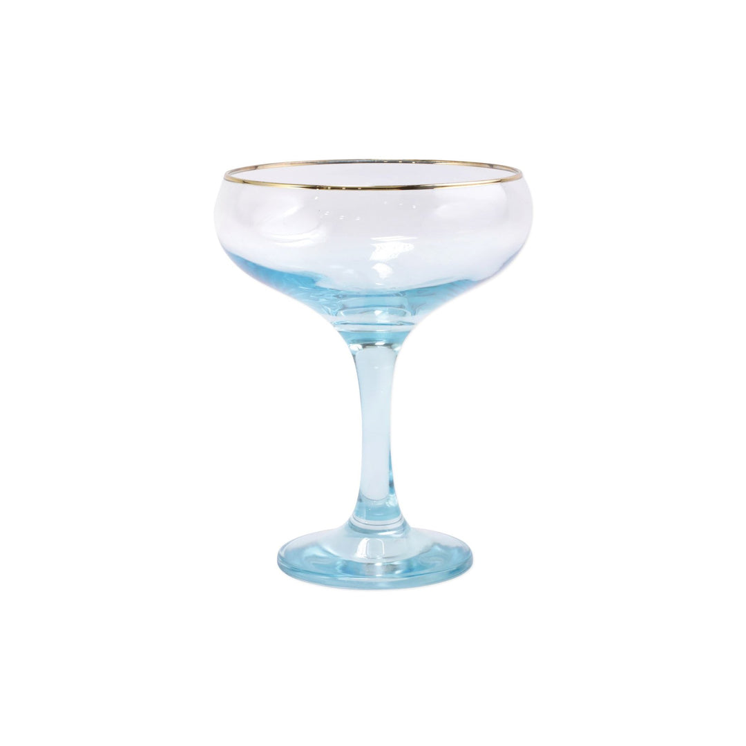Add sparkle to any setting with a gilded gold rim and varied colored glass that refracts light on the Rainbow Coupe Champagne Glass.