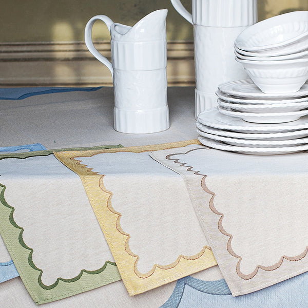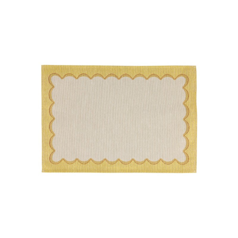 Create an inviting atmosphere with the Tavola Yellow Scalloped Placemats, featuring jacquard stitching and a soft color palette.