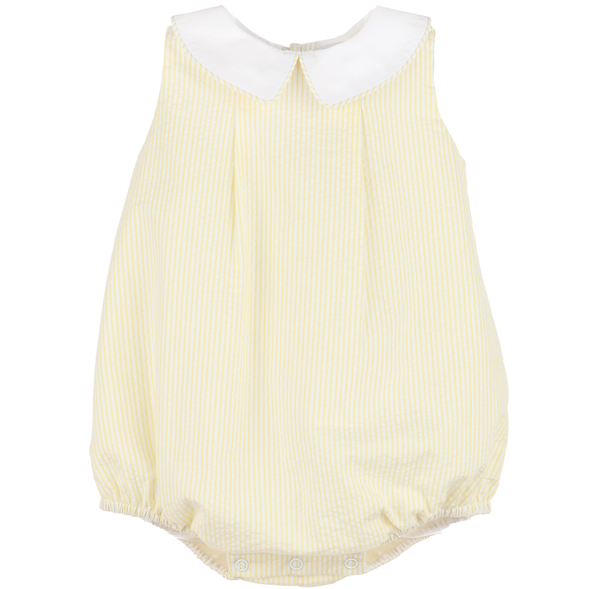 Indulge your little one in luxury with our Yellow Sugarbaker Baby Bubble. Made from a soft and breathable yellow seersucker fabric, this timeless piece features a crisp white straight collar for a sleek and sophisticated look. Perfect for your little gentleman!